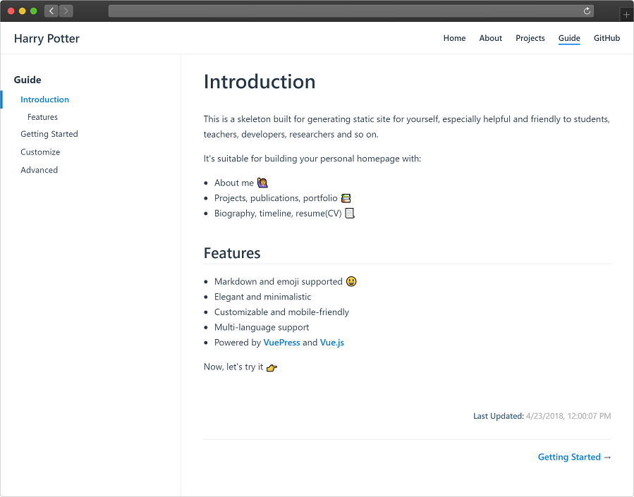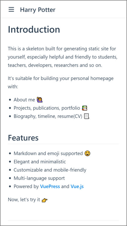 - Powered by VuePress and Vue.js