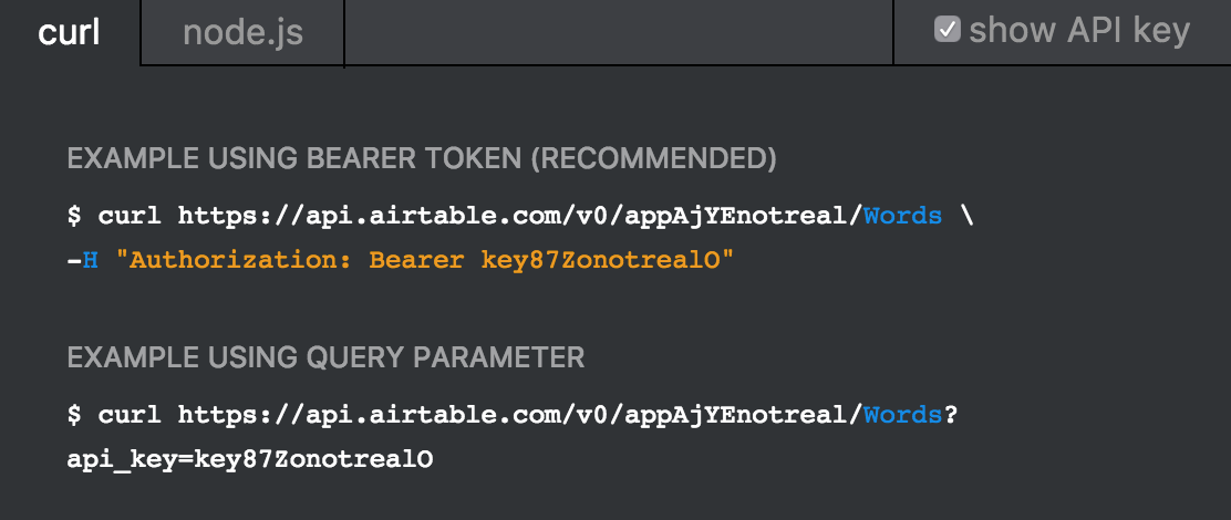 Based on Changelog There are two ways to authenticate with Airtable API: